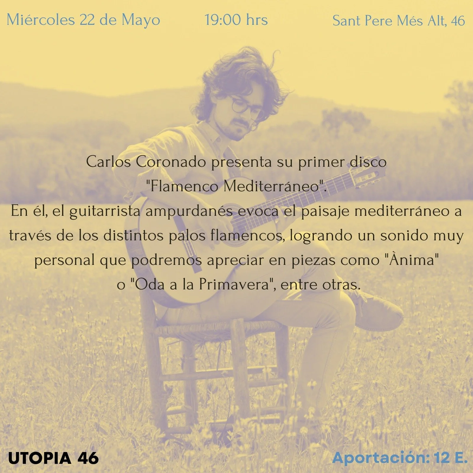 El artista evoca el paisaje mediterráneo a través de diferentes palos flamencos, logrando un sonido muy personal que se puede apreciar en diferentes piezas, como “Ànima” o “Oda a la Primavera”, entre otros.