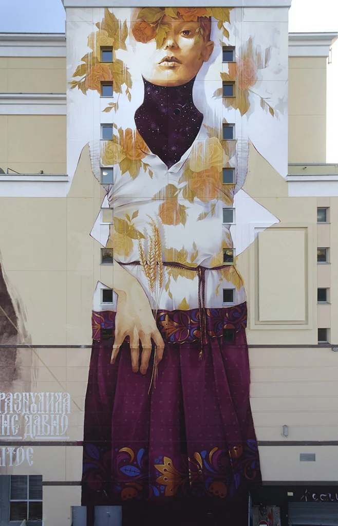 This new mural by INTI, alludes to the important role that women have played in the great social changes of the 20th century. The mural is one of several that are part of the "Artrium" project, which has managed to subtract advertising space in exchange for murals in the center of Moscow.