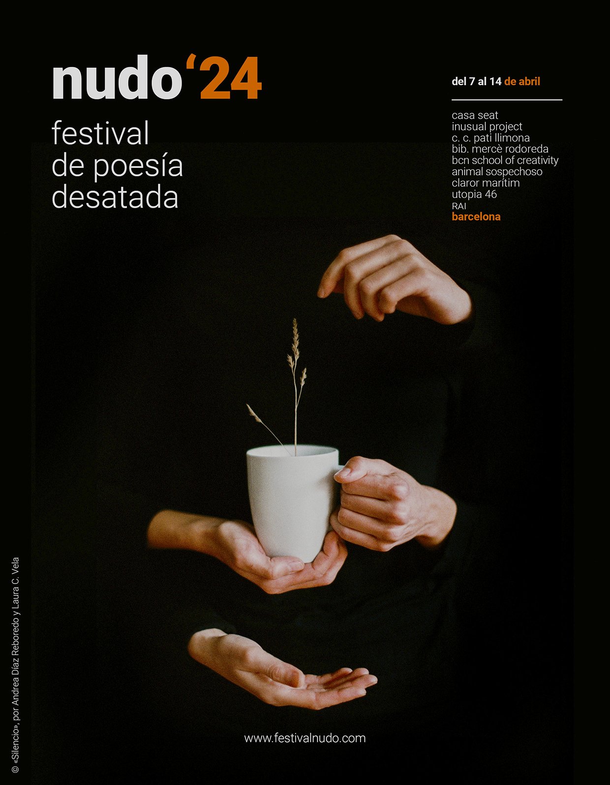 NUDO, festival de poesia desencadenada és una trobada poètica anual que se celebra a Barcelona des del 2017 per mostrar la realitat poètica contemporània sense límits de fronteres, llengües o formats. Advoca pel permanent diàleg amb altres disciplines i el format petit, que propiciï l'experiència íntima i propera on regna la germandat, la paraula i la bellesa. Per això cada edició ofereix un autèntic oasi a la nostra quotidianitat frenètica en forma de performance, videopoesia internacional, rutes o tallers insòlits, actuacions en directe i exposicions de poesia visual. En resum, vuit dies de poesia expressada en múltiples maneres. Perquè el cos és lírica, i això multiplica les nostres possibilitats de salvació. Pots consultar el programa complet més avall i tots els detalls a la web